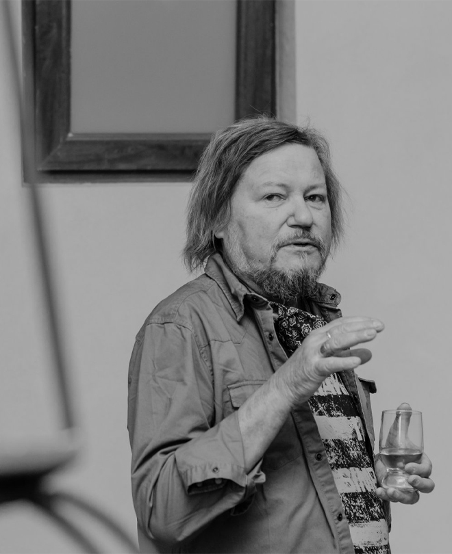 Диалог с Алексеем Малых в Центре современного искусства «White World» был не первым, однако и не последним. Но особенным той наполненностью художника, которая вполне способна выразить себя в монологе и не нуждается в «наводящих» вопросах. Поэтому их было экспериментально мало – по одному в начале и в конце. И они удачно не перебивали звон выставляемых во время диалога на стол бокалов – в ЦСМ вовсю шла подготовка в встрече Нового года широким кругом замеченных там за эти годы авторов. Разговор мог закончиться сакраментальным вопросом о творческих планах, но закончился тем, что художник не любит ничего расписывать наперед.
